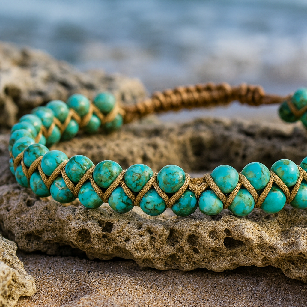 調整可能なコードにより、完璧なフィット感が得られ、日常使いにも意味のあるギフトにも適しています。ターコイズは保護と知恵の石として知られ、平和、調和、ポジティブなエネルギーを象徴しています。